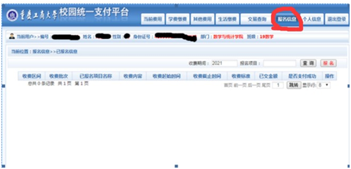 根据提示完成相关信息的填报(姓名、学号、公司、 班级、年级、手机号码、大一英语任课老师等)并完成报名缴费手续。