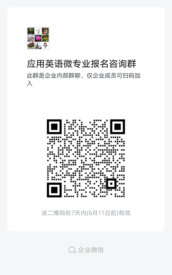 如果您想要轻松地通过各类英语考试,并取得更好的职业发展机会或更高的学术成就,赶快报名加入我们吧!有意报名咨询的同学企业微信咨询袁碧清老师,欢迎扫码加入企业微信群!二维码7天内有效!