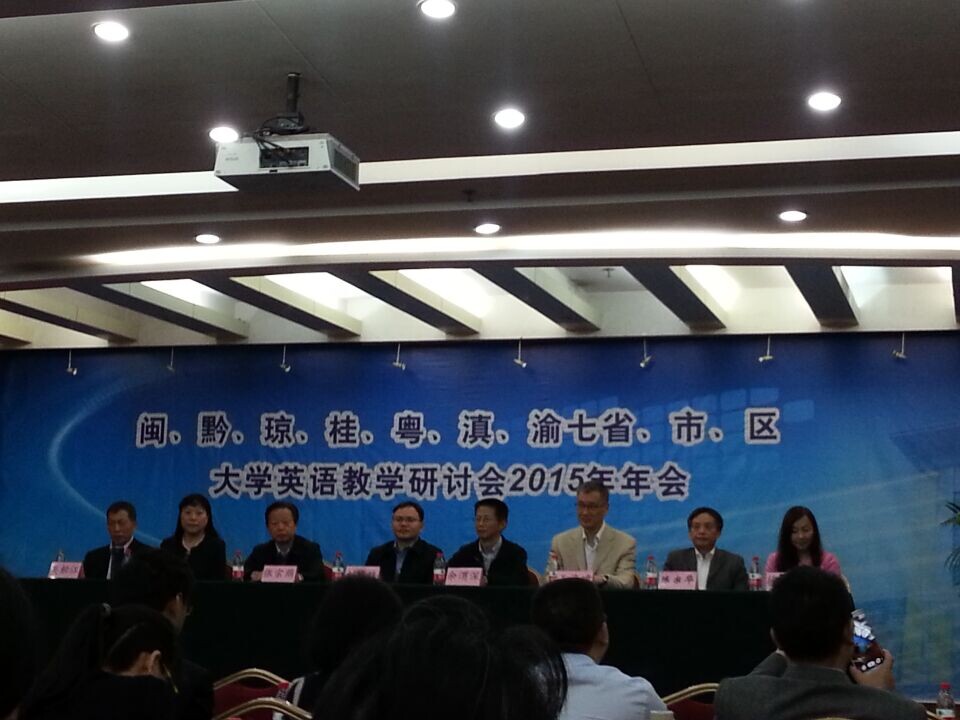 2015年4月22—23日,闽、黔、琼、桂、粤、滇、渝七省、市、区大学英语教学研讨会2015年年会在重庆召开。公司毕丽君和龙亚两位老师参加了此次大会。大会由七省、市、区大学英语教学研讨会理事会主办,由重庆市大学外语教学研究会承办。会议通报和交流了各省、市、区在开展大学英语教学、教学研究以及教学改革各方面的情况,探讨了大学英语教学与研究改革领域合作的可能性和拟定合作项目的可行性。