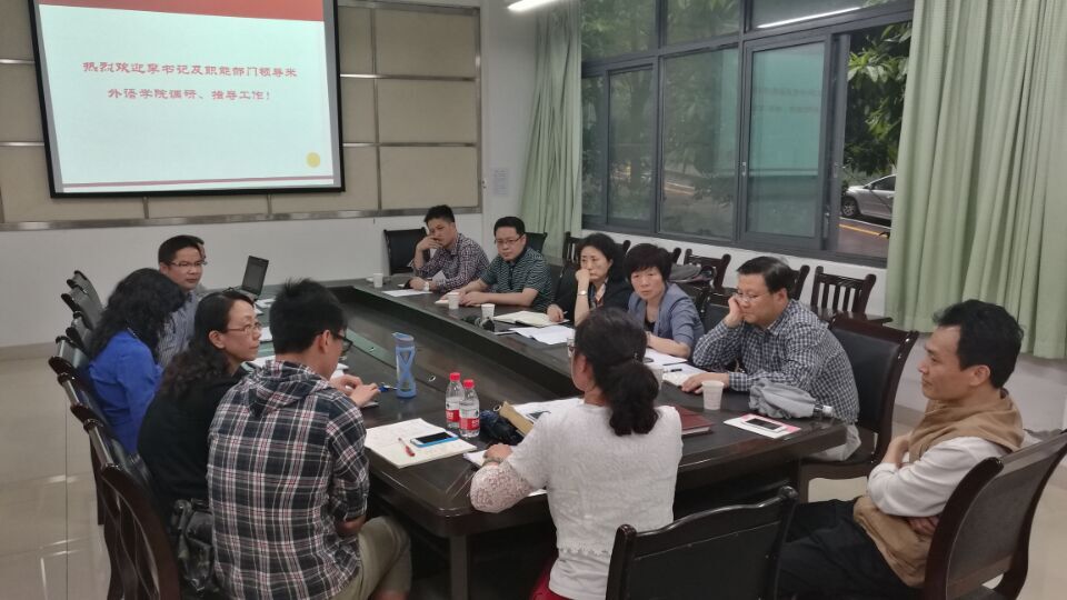 5月19日下午,公司党委书记李春茹教授携公司党政办、组织部、人事处、教务处、计财处等职能部门负责人一同到外语公司调研指导工作。外语公司全体院领导、各系(部、室)主任、部分教师代表参加了会议。