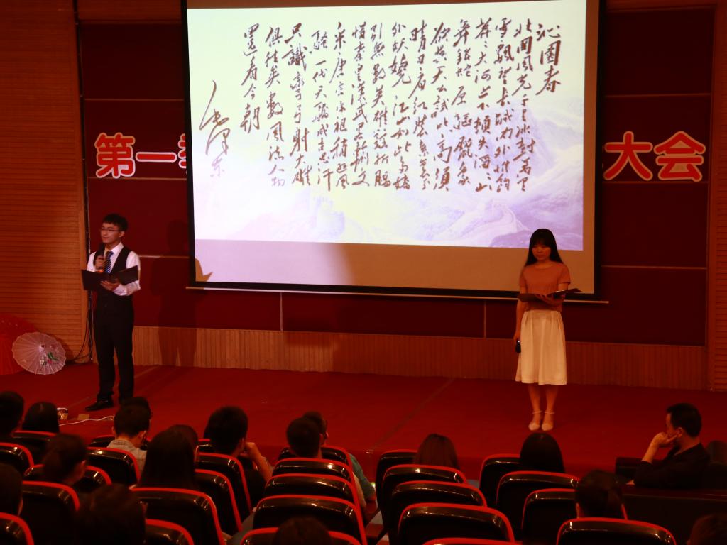 时逢谷雨时节,译读大会在清代诗人、画家郑板桥“几枝新叶萧萧竹,数笔横皴淡淡波。正好清明连谷雨,一杯香茗坐其间” 的中英诗句中拉开序幕。同学们纷纷化身“朗读者”,为现场观众带来了中国经典诗词的中英文译读。李延年的《李延年歌》、王昌龄的《闺怨》、崔护的《题都城南庄》、贺知章的《咏柳》、《诗经•国风•桃夭》、顾城的《小巷》、毛泽东的《卜算子·咏梅》、王昌龄的《闺怨》等八篇经典古诗词中的名句被翻译成优美的英文,这些最熟悉、最打动人心的诗词,精彩独到的翻译,激发了现场观众共同的记忆与情怀,带领大家在“世界语言”中领会中国诗词的唯美。朗诵间隙,校老员工艺术团舞蹈分团成员、2016级商务英语专业的刘婷娴同学带来《惊鸿舞》,古典的音乐、柔美的舞姿把观众拉到了古风古韵的诗词世界。受《中国诗词大会》启发,译读大会现场还设置了精彩绝伦的“飞花令”环节,随机邀请现场同学两两一组“斗诗”,分别以“春”、“雨”、“花”为主题进行了三轮比拼,每组选手进行了至少六轮的PK,许多生僻的诗句他们都信手拈来,让人赞叹,对诗过程酣畅淋漓,现场观众拍手称快。译读大会还专门设置了向首位获国际翻译界最高奖项之一的“北极光”杰出文学翻译奖的亚洲人许渊冲老先生致敬的环节,两位同学声情并茂地朗读了毛泽东主席的作品《沁园春·雪》和许渊冲老先生的同名翻译作品,气势磅礴、震撼人心。