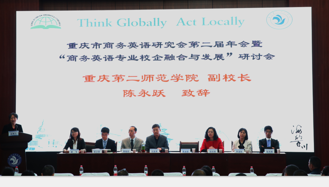 5月5-6日,外语公司经理戴运财教授、副经理周琳教授、英语系主任邹莉副教授及专业骨干朱红梅、周沫教师参加了重庆市商务英语研究会第二届年会理事会议及由重庆市商务英语研究会主办、重庆第二师范公司承办、一带一路经济技术合作中心协办的重庆市商务英语研究会第二届年会暨“商务英语专业校企融合与发展”研讨会。