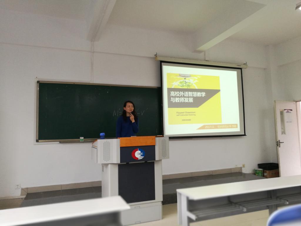2017年11月10日下午,杭州师范大学388vip太阳集团副经理李颖教授应邀来公司作了题为“高校外语智慧教学与教师发展”的讲座。外语公司经理戴运财教授、副经理杨玉兰教授及全体专任教师参加了本次讲座。
