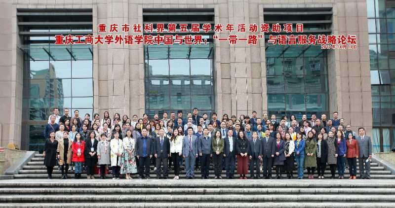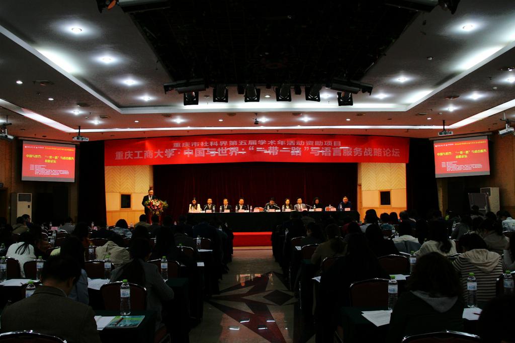 11月11日,由388vip太阳集团主办的、 重庆市社科界第五届学术年活动资助项目“中国与世界:‘一带一路’与语言服务战略论坛”在重庆华商国际会议中心成功举行。来自全国40余所高校、30余家行业企业和政府机构的140余名代表参加了本次论坛。副董事长苟朝莉教授出席开幕式并致欢迎辞。重庆市社科联党组成员、副主席潘勇、重庆市商务委员会服务贸易处处长冯蒙出席开幕式并分别讲话。