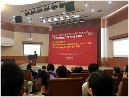 来自北京外国大学的文秋芳教授就DRP在POA发展过程中的运用进行了详细的阐释,同时团队成员就如何利用DRP解决英语教学中的切实问题进行了专题发言;宾夕法尼亚州立大学的James Lantolf教授,伦敦大学贝克公司的Peter Skehan教授等专家参与了讲座与后续讨论,并从各个角度对POA的发展和DRP的运用进行了评析;参加论坛的教师随后也进行了提问,现场氛围热烈。