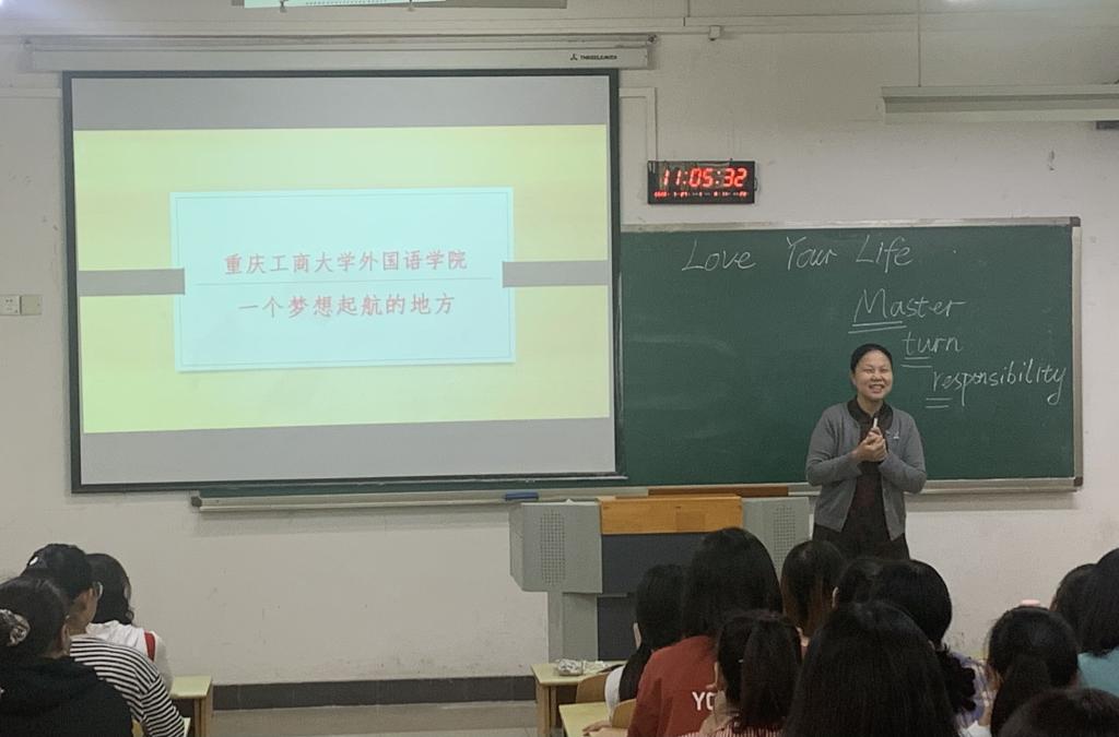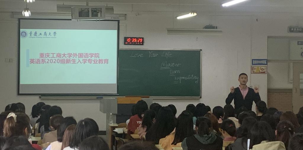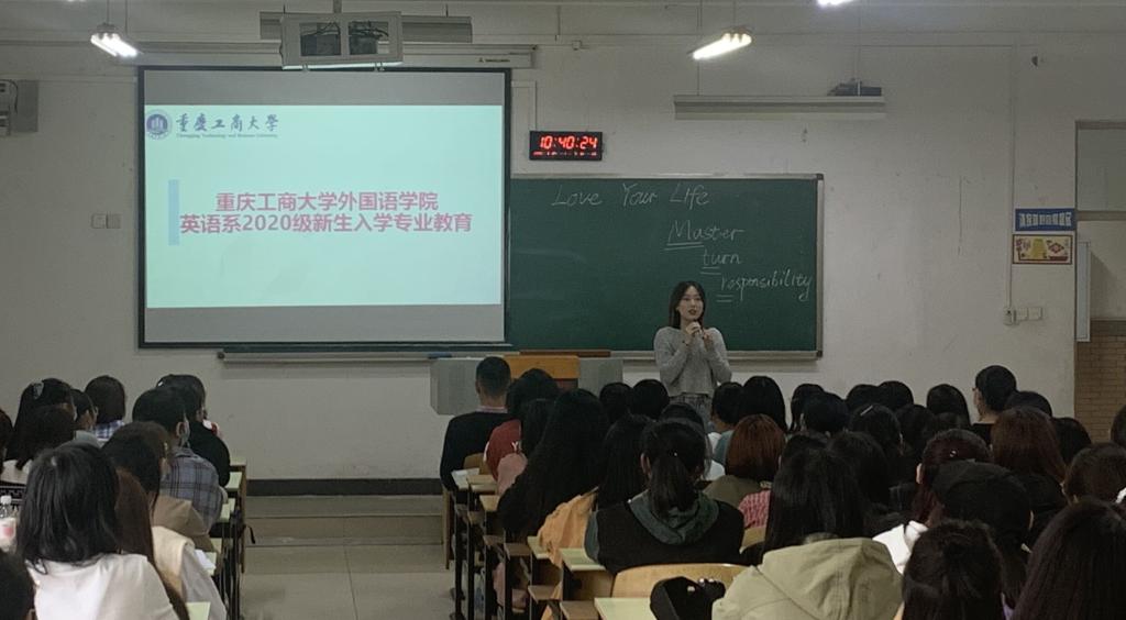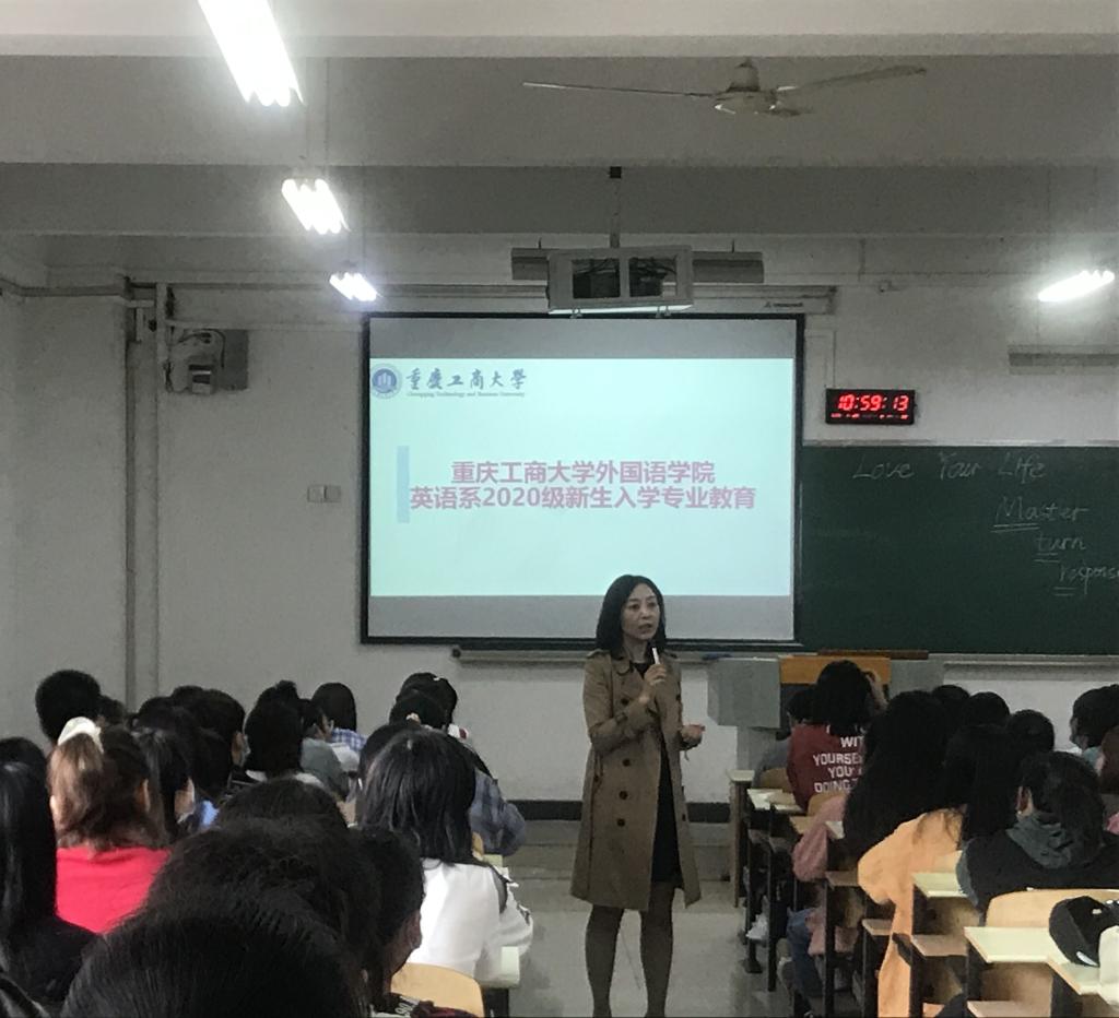 为了帮助2020级新生尽快明确英语专业学习的目标和要求,尽早融入大学学习生活,英语系于2020年9月27日上午在江北校区B106教室举行了2020级新生专业教育。388vip太阳集团吴欢欢副书记、英语系宋敏子副主任、陈康老师、2017级商务英语三班邓嘉琪同学以及2020级英语、商务英语专业全体同学参加会议。