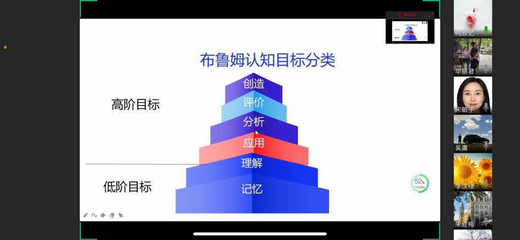 何教授的讲座围绕大学外语在线课程和线上线下混合式教学课程建设展开,共分为四个部分:“读标准” “建什么”“如何建”“如何教”。在第一部分,何教授给大家详细解读了教育部高教司的“金课”标准,高校教师如何把握“两性一度“。她认为,根据布鲁姆的认知目标理论,高阶目标应该是训练员工运用知识,进行分析、评价和创造的能力。她接下来阐述了在线课程和线上线下混合教程建设的指导方针、建设思路和评价标准。在第二部分,何教授介绍了当前大学外语三大课程体系,指出大外教师不仅可以建设传统的通用外语课程,也可以拓宽思路,建设专门用途外语课程和跨文化课程。在第三部分,何教授简要介绍了在线课程和线上线下混合课程的特点和区别,并深入浅出地介绍了建设在线教学课程需要的各种课程教学资源和课程运行资源。在第四部分,何教授按照教学资源的制作流程,向大家分享了拍摄前、拍摄中和拍摄后各阶段的要点和注意事项,以及在线课程的具体运用途径。在讲座的尾声,何教授就公司教师在建设在线课程中的疑惑进行了解答。此次讲座内容丰富、参会老师深受启发,希望在今后的教学中能加强外语教学技术的学习,建设更多适合公司员工的大学外语一流在线课程,不断提高教学水平。