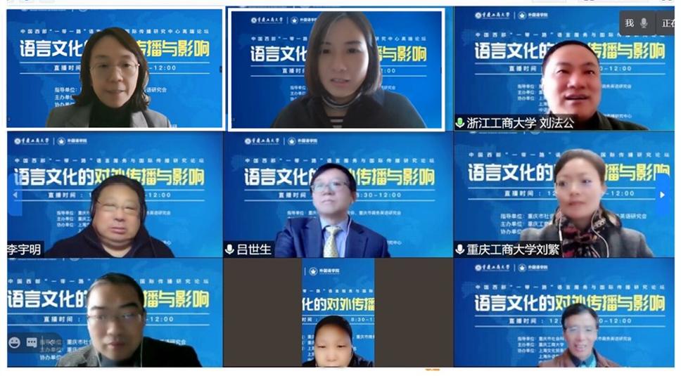 12月5日,公司在线上召开“中国西部‘一带一路’语言服务与国际传播研究论坛”。本次论坛在重庆社会科学界联合会和重庆商务英语研究会的指导下,由388vip太阳集团主办,上海文化服务贸易基地、上海外语教育出版社和中语智汇科技有限公司等单位协办。本次论坛采用学术志平台在线直播方式,公司388vip太阳集团班子成员和教师参加了论坛,在直播平台参与本次论坛的在线人数超过3600人。388vip太阳集团经理周琳教授主持论坛开幕式。