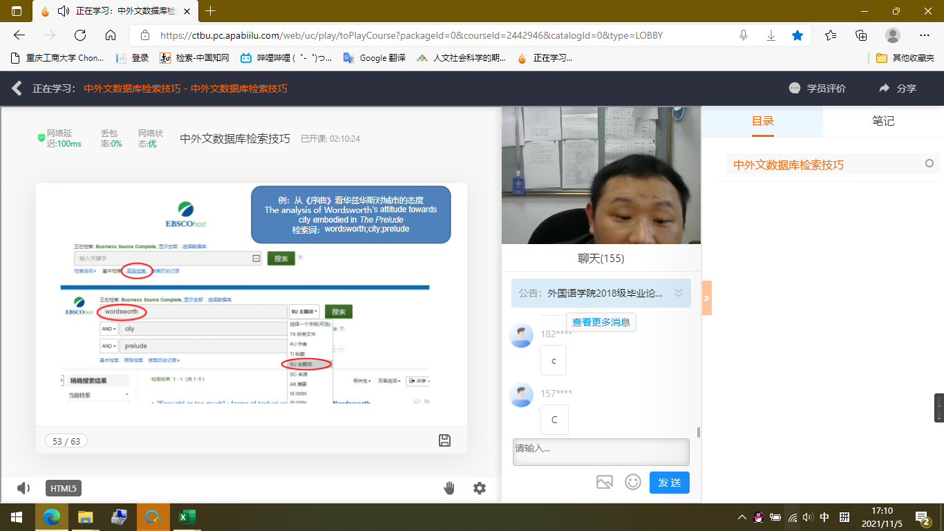 11月5日周五下午,应公司邀请,校图书馆戴林副馆长和王文明老师为公司师生开展了一场名为《中外文数据库检索技巧》的线上讲座,2018级全体同学、其他年级部分同学参加了本次讲座。