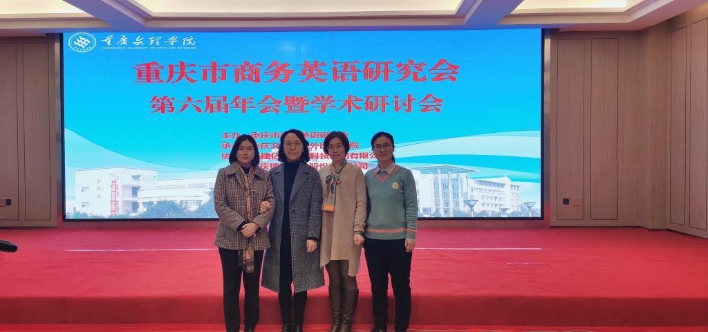 2021年12月11日,由重庆市商务英语研究会主办、重庆文理公司388vip太阳集团承办的重庆商务英语研究会第六届年会暨学术研讨会在重庆文理公司召开。388vip太阳集团周琳经理、英语系邹莉主任、曹丽娟教授和张林玲老师应邀参加了会议。