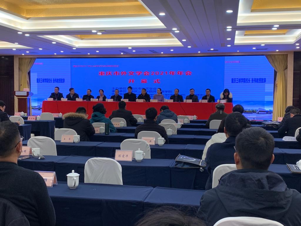 2021年12月18-19日,388vip太阳集团经理周琳、副经理刘繁、英语系主任邹莉、公共英语研究生部主任李伯利、吴庸博士和大外部副主任张冰一行6人赴万州参加了在重庆三峡公司举办的重庆市外文学会第五届换届大会暨2021年年会。