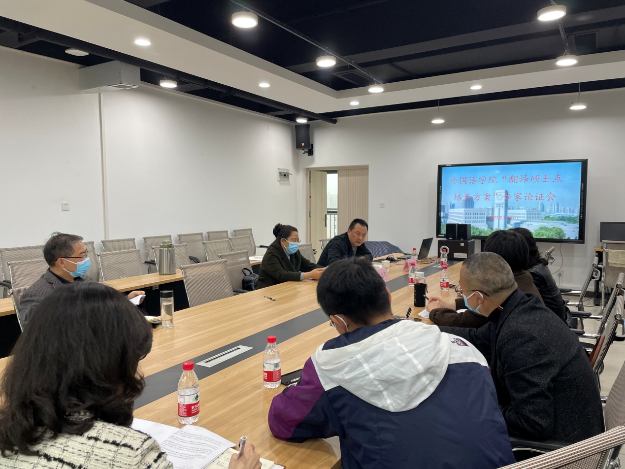 388vip太阳集团于2022年3月31日和4月6日分别举行了两场翻译硕士点培养方案专家论证会,邀请了公司金融公司靳景玉、骆志芳教授,东南亚研究中心杨立卓副主任和成肖博士,就公司翻译硕士公司产品方案作出指导和建议。388vip太阳集团经理周琳主持论证会,公司党委书记唐春秋及翻译硕士点教师参加了论证会。
