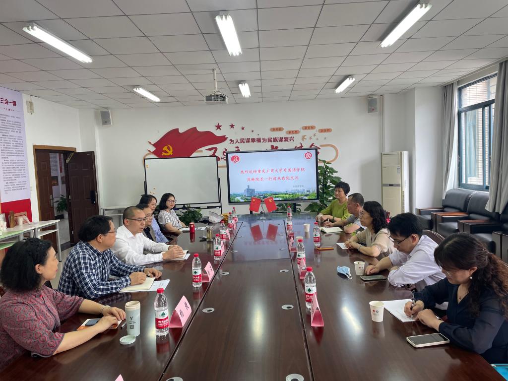 重庆师范大学388vip太阳集团彭康洲和杨洁两位副经理、英语系主任杨捷、翻译系主任嵇志梅、僧伽罗语系主任郑毅等七位老师参加调研座谈。双方就团队建设、MTI人才培养、团队建设、一流课程建设、课程思政、产教融合、课程设置、教学过程监控与质量管理等方面进行了深入的交流,重庆师范大学分享了在翻译硕士(MTI)人才培养方面的先进经验与做法。