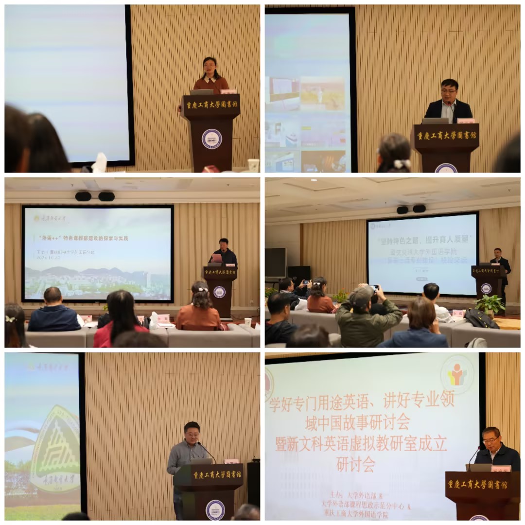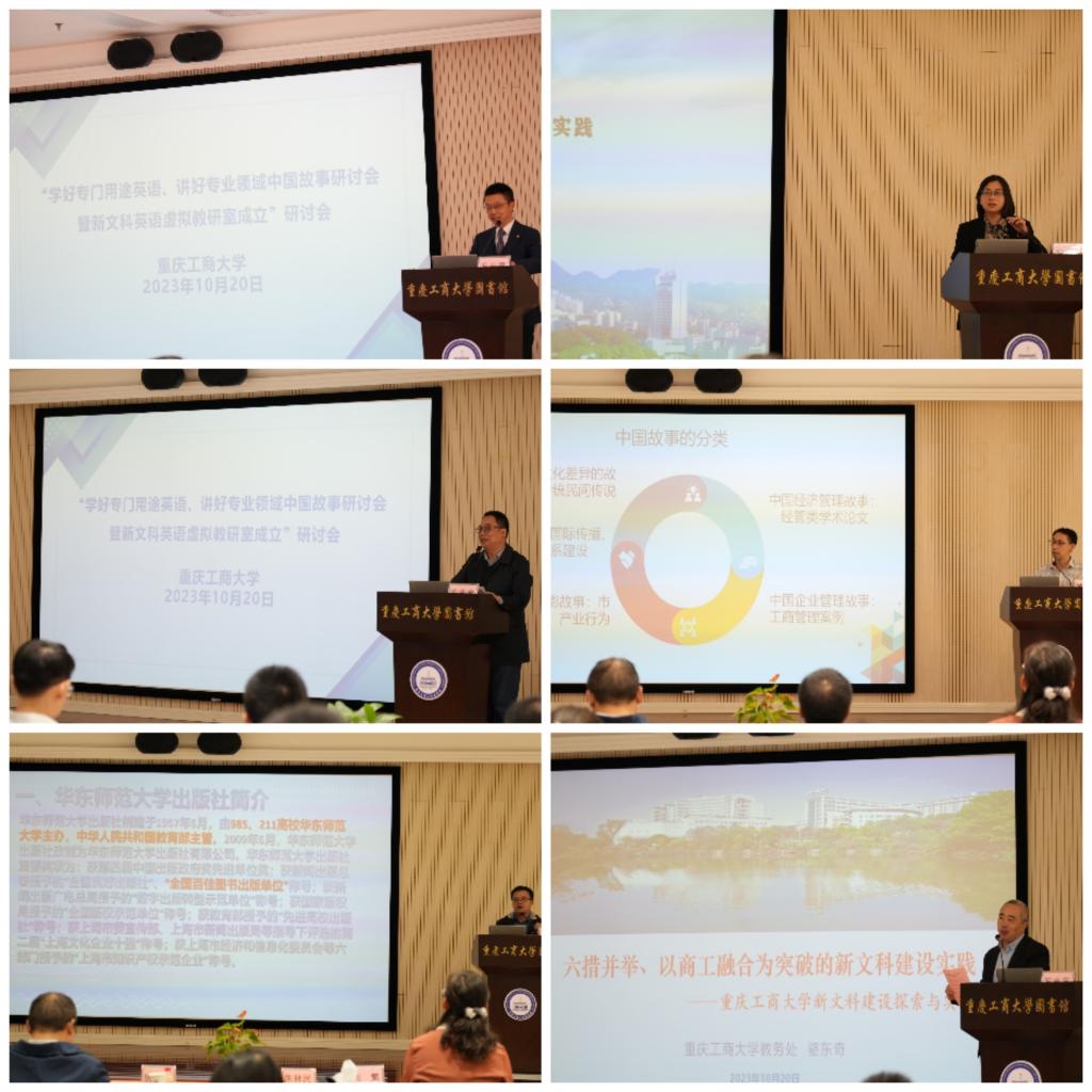 2023年10月20日上午,由388vip太阳集团和大学外语部课程思政示范分中心主办的“学好专门用途英语、讲好专业领域中国故事”教学研讨会暨新文科英语虚拟教研室成立大会在校图书馆视听阅览室召开。388vip太阳集团、重庆交通大学、重庆邮电大学、外语教学与研究出版社、重庆博教科技股份有限公司、华东师范大学出版社等单位相关专家学者、老师参加会议。