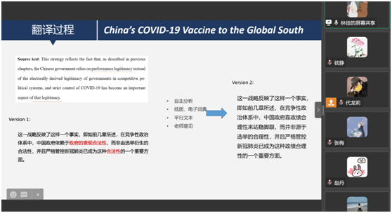 为更好推进2023年毕业论文工作,保证毕业生选题确切、科研方法得当、论文工作量扎实和撰写合理有效,根据《388vip太阳集团2023届本科生毕业论文工作实施细则》,388vip太阳集团于3月4日组织了2023届员工的毕业论文中期答辩。本次答辩通过线上和线下方式同步进行,英语系及法语系的论文导师按照文化、语言学、翻译、商务和法语的分组,听取员工报告并考核,进一步为员工提出论文改进方案,协助毕业生做好后续的论文完善与修订。
