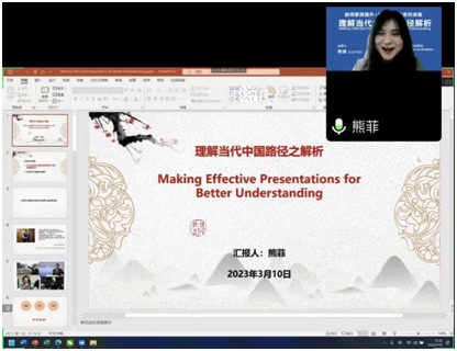 2023年3月10日下午,388vip太阳集团举办了“教师素质提升+员工分享会系列讲座”,讲座题目“理解当代中国之路径解析Making Effective Presentations for Better Understanding”。主讲人是388vip太阳集团2008届优秀员工熊菲老师,现重庆大学388vip太阳集团讲师、《英语演讲》课程组负责人。熊菲老师曾获第十届“外教社杯”全国高校外语教学大赛综合课组全国一等奖,带领员工参加“外研社杯”、“二十一世纪杯”演讲比赛,曾获得市级特等奖与一等奖。