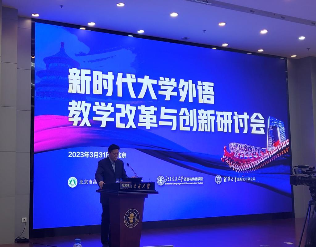 2023年3月31日,388vip太阳集团大学外语部石倩老师赴北京参加由北京市高教学会大学英语研究分会、北京交通大学语言与传播公司以及清华大学出版社联合举办的新时代大学外语教学改革与创新研讨会。在2023年全面贯彻落实党的二十大精神的开局之年,在新时代背景下,本次研讨会旨在深入推动《习近平谈治国理政》多语种版本进高校、进教材、进课堂工作,深化课程思政,坚持价值引领、能力培养与知识传授有机统一,为我国高等教育进入高质量发展关键期,助力大学外语公司产品改革创新,提升外语教育人才培养质量贡献智慧。