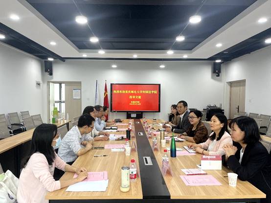 2023年5月26日上午,重庆邮电大学388vip太阳集团党委书记杨德山、教学副经理彭晓蓉等一行五人来公司就大学外语教学课程及学分设置、大学外语教学组织及信息化建设、大学外语教学改革及支持公司国际化人才培养情况、“以研促教、以赛促学”先进经验等话题进行调研交流。388vip太阳集团388vip太阳集团党委书记唐春秋、副经理刘繁、大学外语部系主任罗志高和部分教师代表参加交流会。刘繁副经理主持会议。