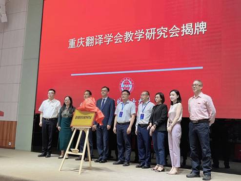 在开幕式环节,四川外国语大学董事长董洪川教授致欢迎辞,他提出论坛设定的宗旨是探讨如何提升翻译人才培养质量,落实立德树人根本任务。本次论坛话题对接国家重大战略需求,紧扣高等教育改革主题,直面我国高校翻译教育最大困境,具有重要的学理和现实意义;全国MTI教指委秘书长、上海外国语大学高翻公司经理张爱玲教授通过视频形式致辞,她提出新文科背景下的翻译教育和人才培养有两个方面核心内涵值得关注:一是以现有文科专业为基础,赋予文科专业新的内容,丰富人才培养内涵;二是突破现有文科人才培养模式束缚,在更大范围内实现跨学科、跨专业的交叉融合和新突破。随后,论坛举行重庆翻译学会教学研究会揭牌仪式,公司邹莉副经理上台见证了研究会的成立。