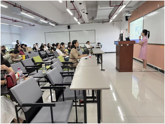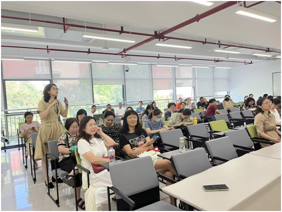 紧接着,本次教研活动围绕大学外语教师数字素养提升,邀请了长江雨课堂的培训老师汪静为老师分享了如何利用雨课堂开展课堂内外的数字化教学。汪老师介绍了雨课堂的功能概要,通过课堂内外使用雨课堂,可以紧密联系师生,辅助数据采集,协同教学分析,优化数字化教学设计,从而提升教学质量。在具体使用上,汪老师介绍了雨课堂的PPT同步、直播录播、限时习题、弹幕互动、投稿互动、随机点名、不懂反馈、课堂小结、PPT试卷制作发布、数据搜集等实践操作,让外语教师们更全面地了解了雨课堂在数字化教学方面的潜力。