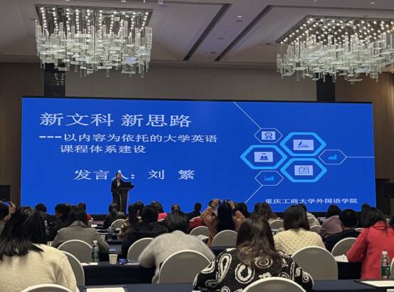 刘繁作了题为“新文科新思路---以内容为依托的大学英语课程体系建设”发言。面对高等教育数字化转型时期大学外语面临的机遇与挑战,388vip太阳集团积极应对新挑战,提出新思路,构建以内容为依托的大学英语课程体系。在PBL大学英语课程中,依托课程大小项目“讲好中国故事,发中国声音和调研中国实际问题,探讨创新解决之路”,践行课程思政创新举措;在提高课体系,以研促教,以内容为依托,探索有校本特色的财经英语课程及人工智能英语课程体系新文科建设系列举措。