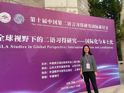 2023年10月27日至29日,由中国英汉语比较研究会二语习得研究专业委员会主办,山东大学388vip太阳集团承办,外语教学与研究出版社、上海外语教育出版社协办的第十届中国二语习得研究国际研讨会在山东济南召开。来自全国各地,以及美国、英国、新西兰、澳大利亚等十多个国家的多位知名专家和650余名学者代表参加会议。公司英语系教师张林玲参加会议并在小组论坛宣读了题为“The Disillusioned Self: L2 Demotivation among Undergraduate English Majors”的论文。