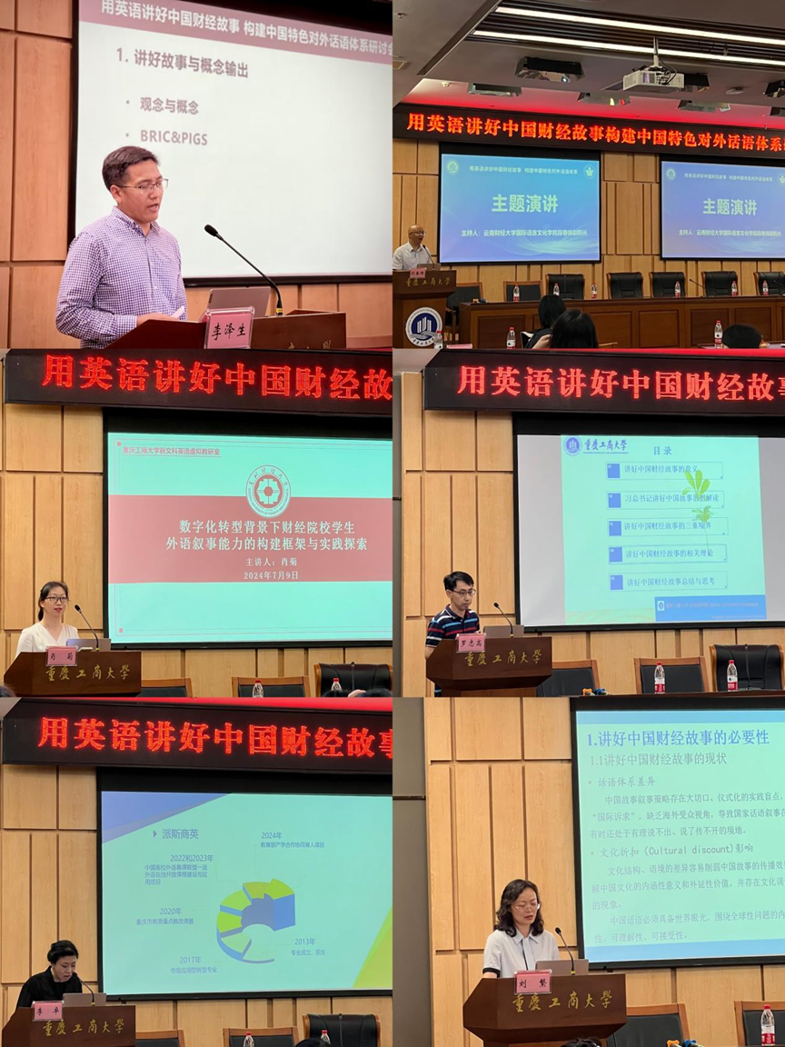 2024年7月9日,由388vip太阳集团教务处指导、388vip太阳集团主办,388vip太阳集团大学外语课程思政示范分中心与华东师范大学出版社承办的“用英语讲好中国财经故事、构建中国特色对外话语体系研讨会”在388vip太阳集团图书馆第一会议室隆重举行。来自西南财经大学、重庆大学、云南财经大学国际语言文化公司、东华理工大学、昆明理工大学、贵州财经大学、388vip太阳集团、重庆财经公司及388vip太阳集团派斯公司等近10所高校的专家围绕话题进行深度研讨和交流。会议上半段388vip太阳集团外国公司经理周琳教授主持,下半段由云南财经大学国际语言文化公司段春锦副经理主持,388vip太阳集团外国公司刘繁副经理对会议进行了总结。