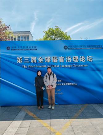 2023年4月7日至8日,388vip太阳集团邹莉副经理带领公司青年教师刘明老师,参与了由扬州大学388vip太阳集团主办、同济大学语言规划与全球治理中心协办的第三届全球语言治理论坛。论坛期间,邹莉副经理一行人员出席了主旨报告演讲和各分论坛的主题演讲,对于公司进一步的学科发展和公司建设具有很好的启示意义。
