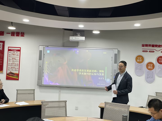 10月25日下午,重庆理工大学388vip太阳集团英语系主任杜云飞教授应邀来公司为教师作《外语学者的发展新进路:国际学术期刊的认知与发表》专题讲座,讲座由邹莉副经理主持。