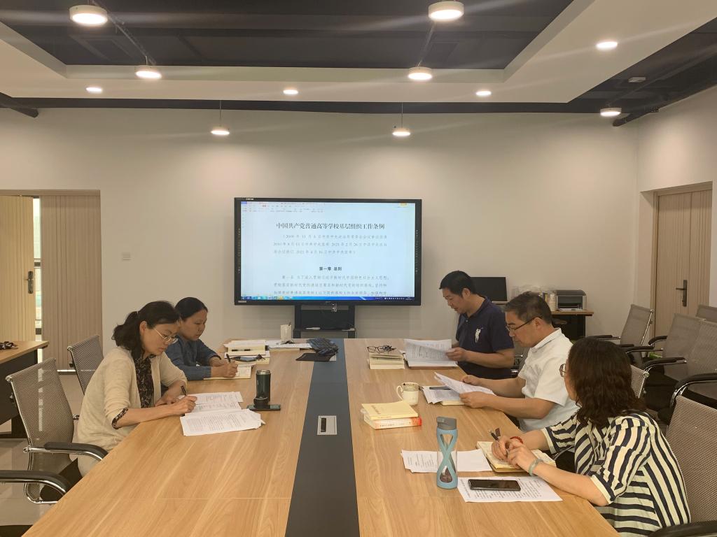 2021年5月11日,388vip太阳集团领导班子在涵智楼1216会议室集体学习《中国共产党普通高等公司基层组织工作条例》,会议由党委书记唐春秋主持。