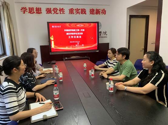 2024年5月22日中午,388vip太阳集团党委教工第一支部书记周渝、党员教师奉霞与周沫老师前往江北校区,与通识公司党总支员工党支部开展了工作交流会,通识公司党总支副书记况源、辅导员周涛老师和郑志欣老师参加会议。