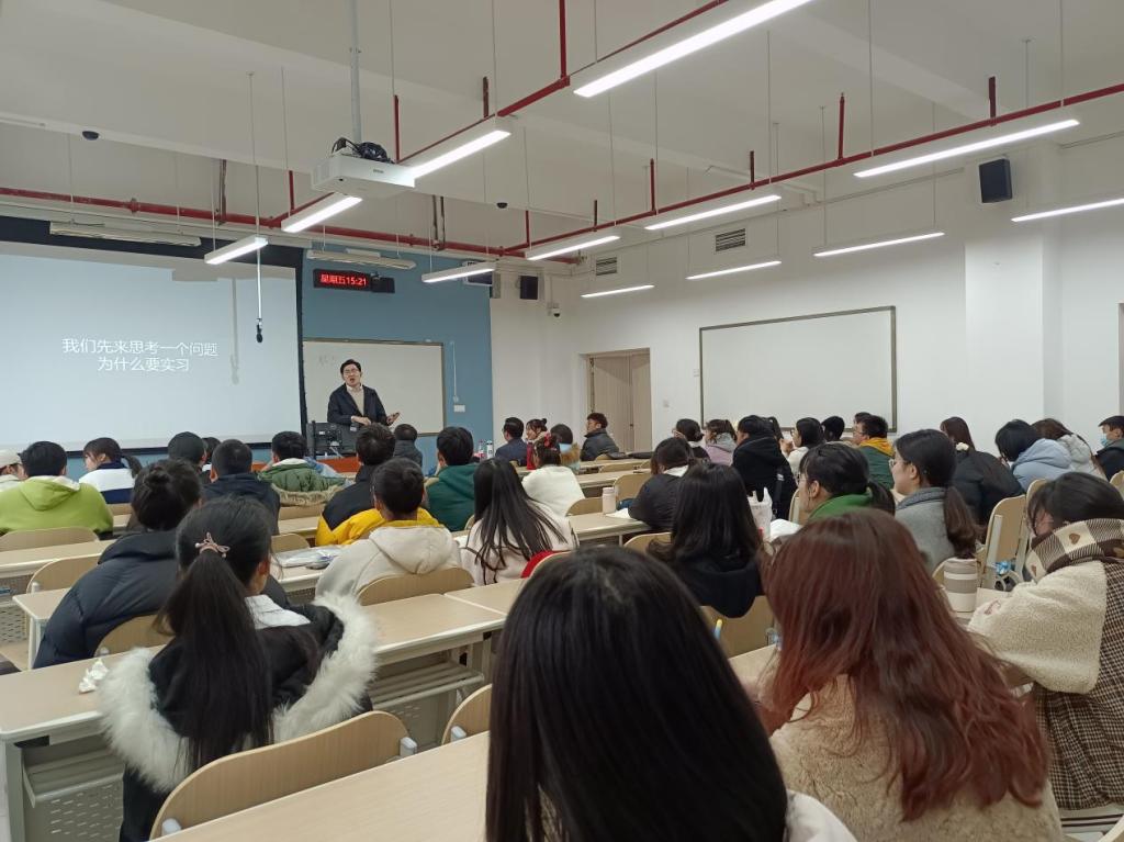 本次会议由就业创业部成员谭媛媛与廖雪主持。2006级员工王玉祥在讲座开端根据自身工作经历介绍了一个优秀工作者不仅要具备过硬的专业实力而且也要具备良好的素质遵守职业道德,在工作过程中要不断丰富自身阅历,积累宝贵经验。2005级员工陶冠桦针对简历准备和面试技巧两方面提出建议,分别阐述了简历呈现有亮点、简历准备的注意事项、如何给面试官留下良好的印象、自身具备的能力要契合公司要求等重要内容。随后刘红飞老师以“为什么要实习”、“毕业后同学们应该注意什么”、“简历需要什么”三个问题作为切入点,强调了实习经历和技能储备的重要性,并提供了多个简历书写方法。最后杨飞从自身求职经历出发,提供了多个实习途径和方法,展示大数据内容和自己归纳总结的面试求职技巧,并阐述了如何发挥自身特长在面试中脱颖而出,同学们纷纷拍照记录PPT上重要的内容。会议结尾是答疑讨论环节,李晨璐同学提出了同学们都比较关心的问题,即老员工可以通过哪些渠道获取优质的实习机会?现场嘉宾针对李晨璐的提问也给出了详细的解答,并为同学们提供了几个实际有用的求职网站。