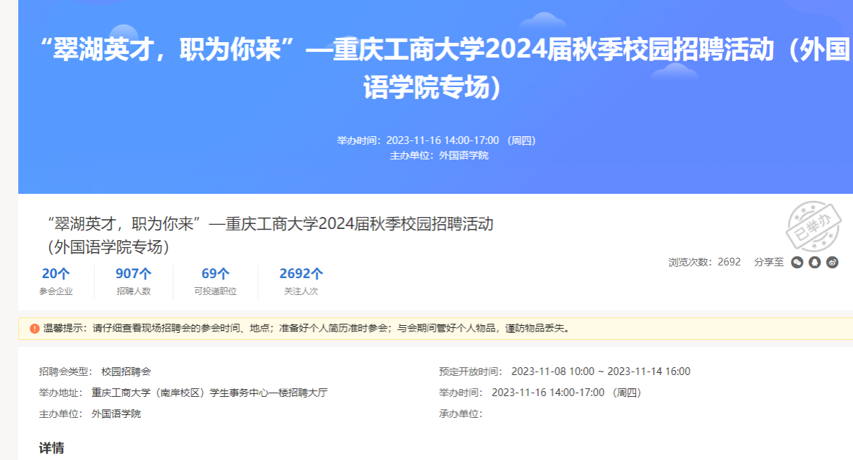 为拓宽就业渠道,帮助同学们顺利求职,388vip太阳集团于2023年11月16日下午在员工事务中心一楼成功举办“翠湖英才,职为你来”2024届秋季388vip太阳集团专场校园招聘活动。公司积极动员,精心策划,邀请了20余家招聘单位前来选聘毕业生。毕业生们积极参加,着装整洁,向用人单位了解岗位,投递简历。