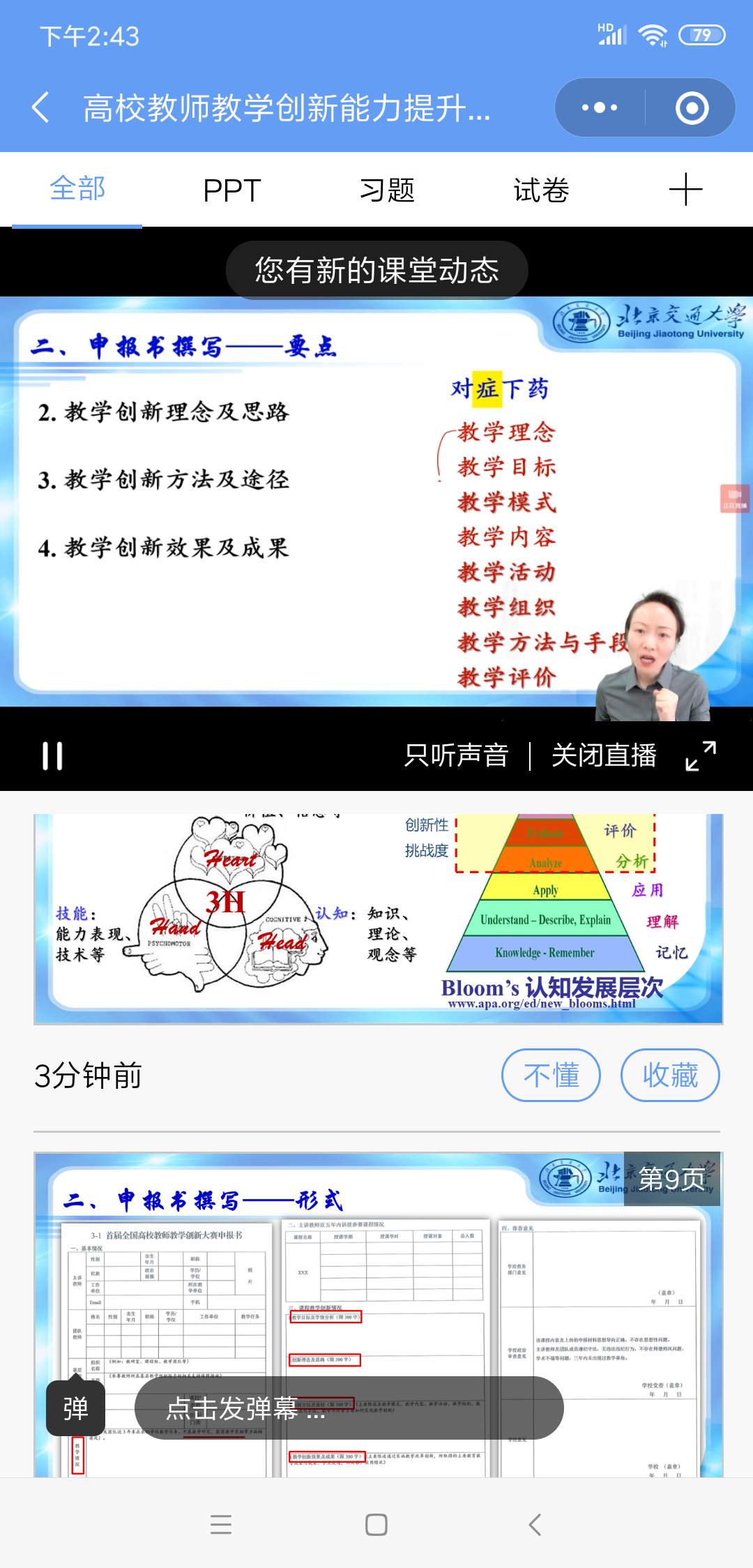 各位主讲人既有立德树人的育人情怀、教学理论与实践的深厚功底、各项教学大赛丰富的参赛或评审经验,更有基于现实问题不断求真开拓的创新精神,他们分别从各自的教学实践出发,通过他们生动的案例讲解,分享了他们对高校教学创新的理念解读、逻辑思路、和具体操作,并通过黄河雨课堂平台和与会者进行即时的问答交流。与会老师们从精彩的讲座中深受启发。
