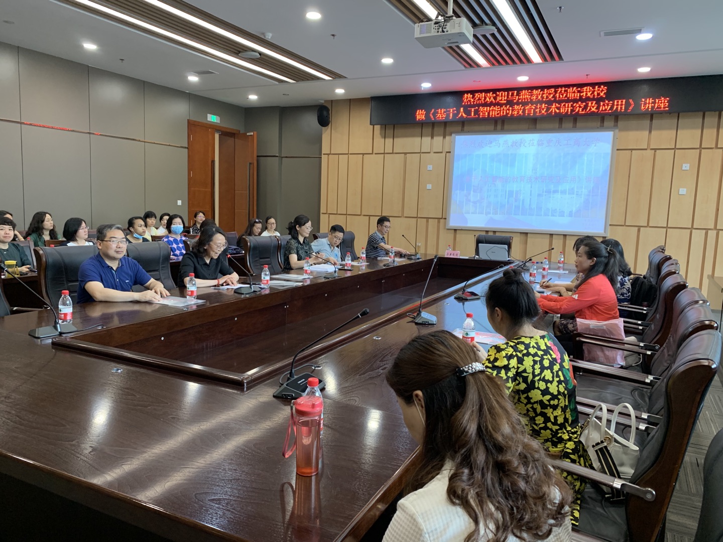 2021年5月14日下午,重庆师范大学智慧教育研究院经理、计算机与信息科学公司暨智能科学公司经理、博士生导师马燕教授应邀来公司为师生开展了主题为《基于人工智能的教育技术研究及应用》的学术讲座。388vip太阳集团唐春秋书记、周琳经理、刘繁副经理、388vip太阳集团专任教师和部分员工参加讲座。讲座由388vip太阳集团周琳经理、刘繁副经理共同主持。
