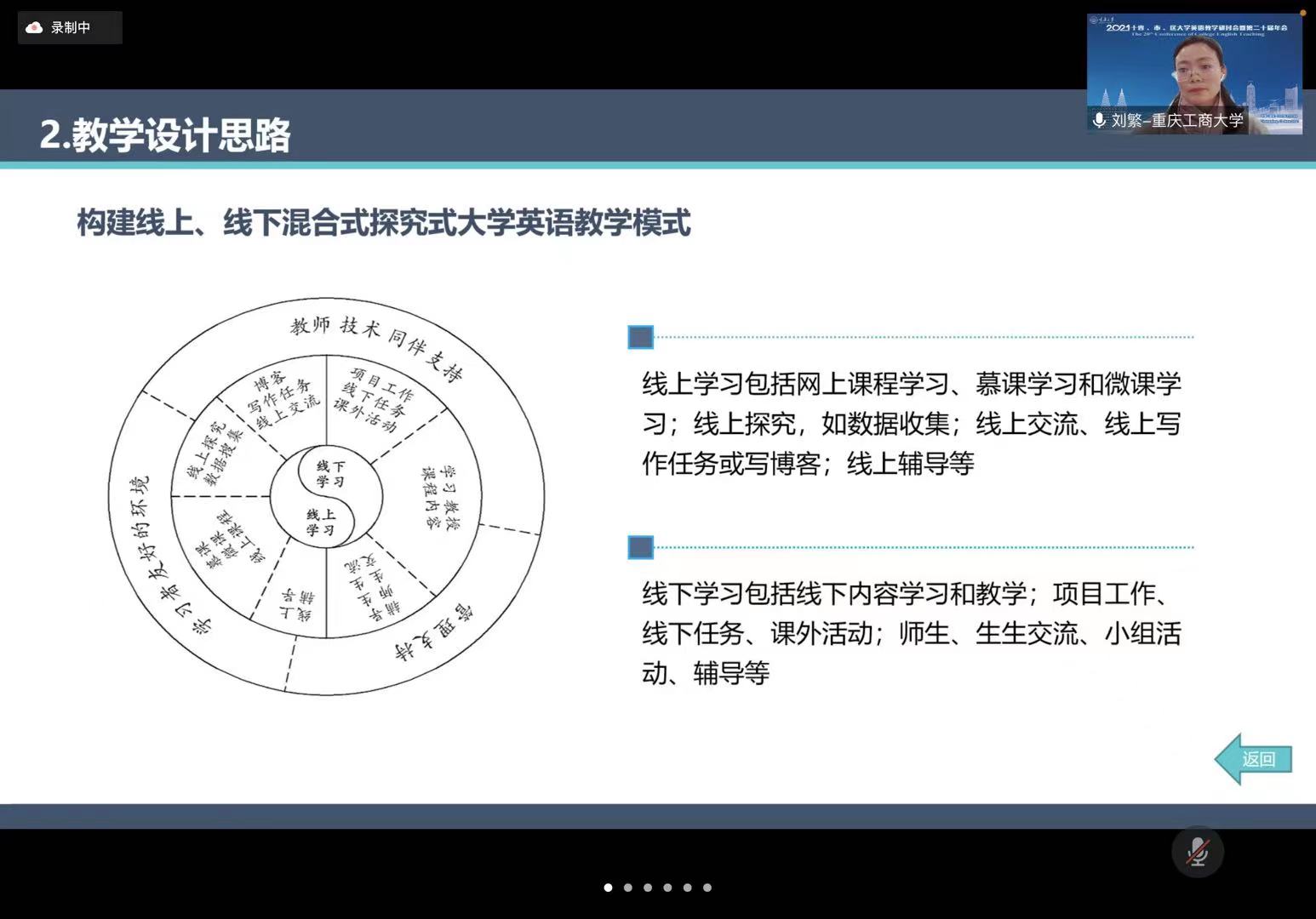 2021年11月13日,闽、黔、琼、桂、粤、渝、滇、京、苏、川十省、市、自治区大学英语教学研讨会暨第二十届年会在重庆顺利召开。大学外语部的老师们在线聆听了与会专家的发言及分论坛的报告。388vip太阳集团副经理刘繁代表388vip太阳集团在分论坛二作报告。