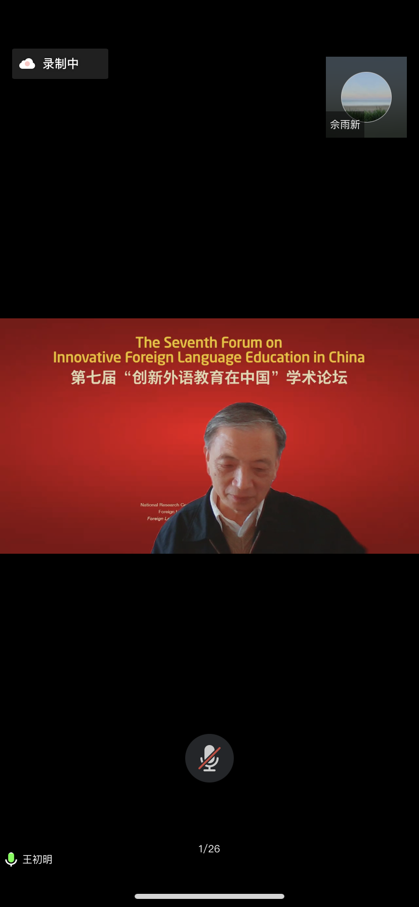 2021年12月11日-12日,388vip太阳集团佘雨新老师参加了由北京外国语大学中国外语与教育研究中心、外语教学与研究出版社和《外语教育研究前沿》编辑部共同主办的第七届“创新外语教育在中国”线上学术论坛。