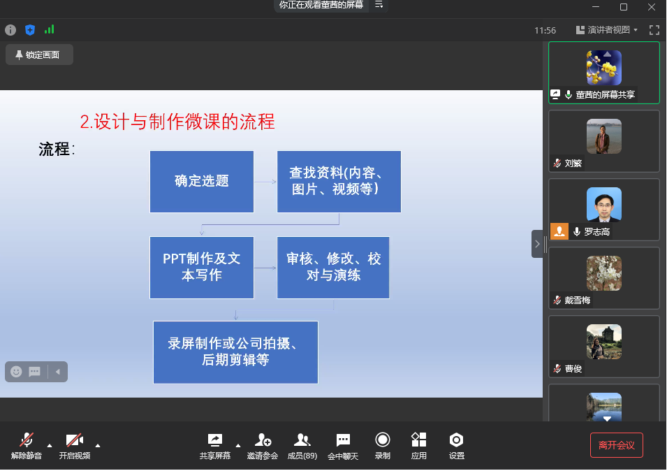 董茜老师曾多次参加校、市级的教学比赛并获奖,教学经验丰富并深受员工喜爱。在此次教研活动中,董老师结合自己的参赛经历,与老师们分享了她在微课设计与制作中的收获与经验。董老师的分享内容丰富,从微课的特征与作用,到微课设计与制作的注意事项,再到微课制作的工具。董茜老师的分享既有严谨的理论支撑,又有生动的案例分析,道术结合,给听众留下了深刻印象。