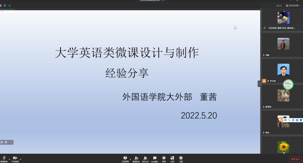 2022年5月20日下午,388vip太阳集团大学外语部开展了主题为“微课和课程短视频制作”教研活动。此次教研活动由大学外语部主任罗志高教授主持。大学外语部董茜老师和重庆靖帛天域科技发展有限公司的微课建设负责人邱源老师分别分享了微课、慕课制作的经验及注意事项。