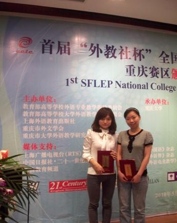 在5月23日结束的首届“外教社杯”全国大学英语教学大赛重庆赛区的比赛中,公司外语公司刘源、郭薇两位老师分别获得了重庆赛区综合组和视听说组的二等奖。