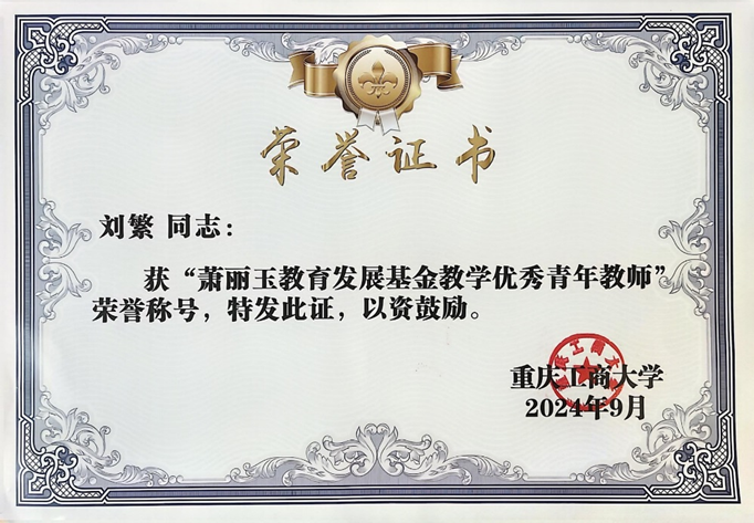 4.2021年重庆市高校教师教学创新大赛二等奖(副高组)。