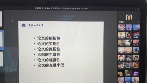 会上夏霁老师分享了校级优秀论文《2019年法国大罢工事件看法国的罢工详细介绍了法语学术论文的特点邹莉老师以《跨境互联网企业如何打破现代重商主义下的贸易壁垒》为例,介绍做了如何做商务实践类论文的讲座史凤晓老师以<麦克白>中的女巫形象与意义分析》为例,给同学们做了如何做研究型论文的讲座张林玲、宋敏子老师分别以翻译实践(英译汉):Rupert Murdoch: The Untold Story of the World’s Greatest Media Wizard (Excerpts)在华职工跨文化适应性调查》为例,分享了翻译实践类和文化类校级优秀论文。五位老师的讲座内容丰富,结合一个个优秀校级本科毕业论文实例,从如何选题、如何查找文献、如何做实证研究、如何进行数据分析、如何进行讨论等方面给同学们做了讲解。