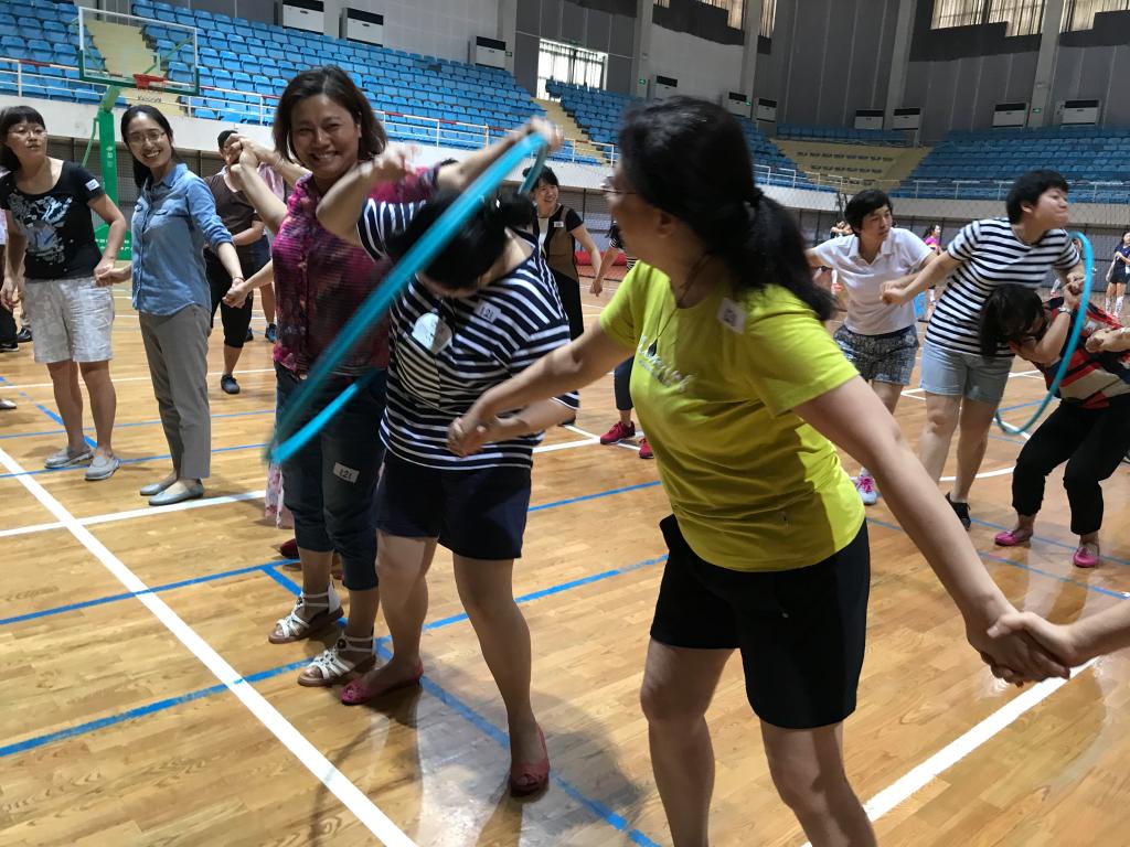 2017年6月24日下午外语公司工会与机关十六工会在校体艺馆开展结对子活动,共同举办了教职工趣味运动会。活动得到了两个部门领导的大力支持和教职工的积极响应。趣味运动会由外语公司党总支书记陈晓东亲自主持,来自外语公司工会和机关十六工会60余名教职工参加了本次活动。