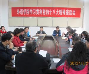 11月21日,外语公司召开学习贯彻党的十八大精神座谈会。副董事长黄大勇教授应邀出席会议,并为外语公司党员教师做了学习贯彻党的十八大精神专题辅导报告。外语公司全体院领导及无课程的党员教师20余人聆听了报告。