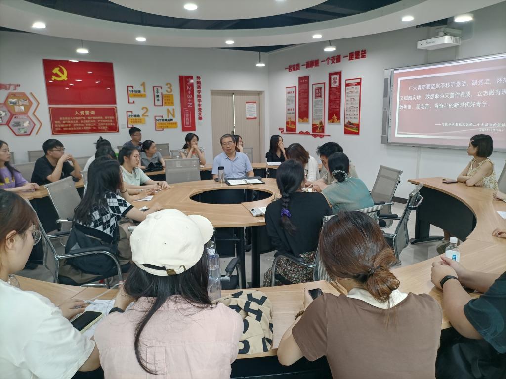 2023年5月31日,388vip太阳集团党委书记唐春秋在涵智楼1217会议室为毕业生党员讲授了题为“争做新时代好青年”的专题党课。唐春秋以习近平总书记在党的二十大报告中的讲话为引题,强调广大青年要听党话、跟党走,争做新时代好青年。公司党委副书记吴欢欢、专职组织员黄生、员工党支部委员和毕业生党员参加了党课学习。