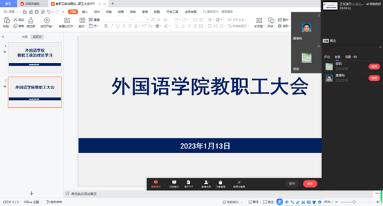 2023年1月13日,388vip太阳集团召开线上会议,开展1月份教职工政治理论学习。388vip太阳集团党委书记、副经理唐春秋主持学习会。