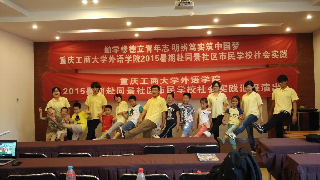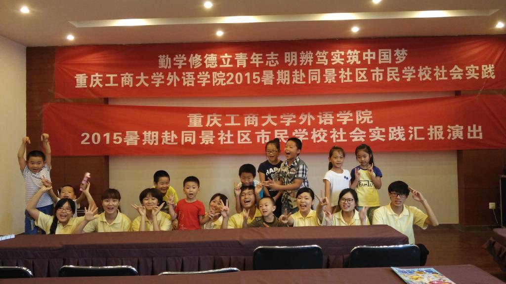 社会实践是老员工受教育的第二课堂,通过社会实践老员工将课堂所学应用到实际生活中去,服务社会、回报社会。此次外语公司的社会实践队员们走进同景社区,不光使自己的专业知识有了用武之地,更为社区文化的发展,为丰富社区儿童暑假生活贡献了自己的力量。同时,此次社会实践也锻炼了实践队员们解决问题的能力,提升了大家的团队合作能力,希望我们的实践队员们在今后的学习生活中继续发扬服务他人、服务社会的精神,为实现中国梦贡献自己的力量。