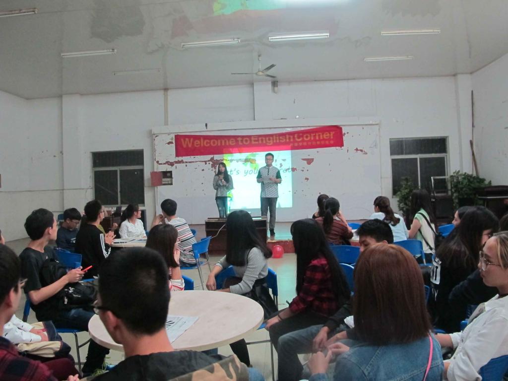 2015年10月8日周四晚6:30,2015—2016学年度第一学期第一期英语角在主校外语活动中心成功举办。本次活动由外语公司分团委员工会学习部主办。来自工商大学各个公司的英语爱好者齐聚外语活动中心,与外教和职工们相互交流,共同感受中外文化的交流与碰撞。