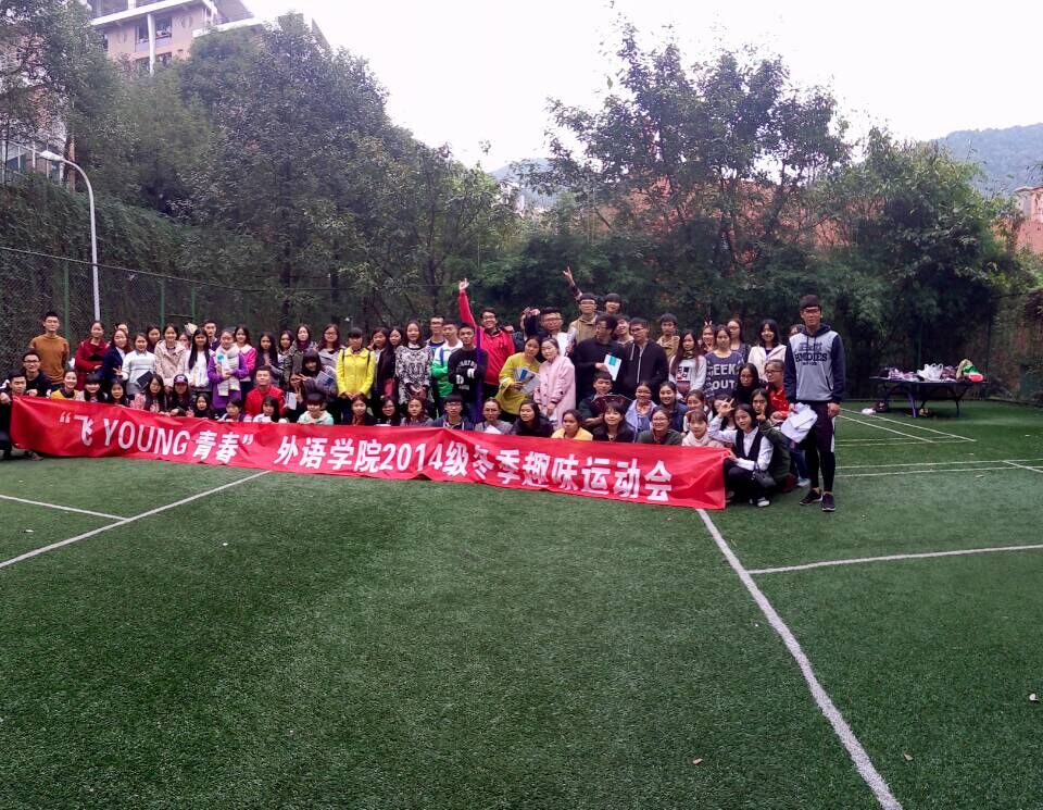 2015年11月27日,外语公司2014级一次别开生面的趣味运动会在田家炳羽毛球场如火如荼地举行。2014级辅导员冉永琴老师出席并担任本次运动会的总裁判长,裁判由来自法语二班的刘瑜珂、刘纯璐同学担任,该班的李雪同学担任计时员。外语公司2014级全体同学热情高涨,积极参加了此次活动。