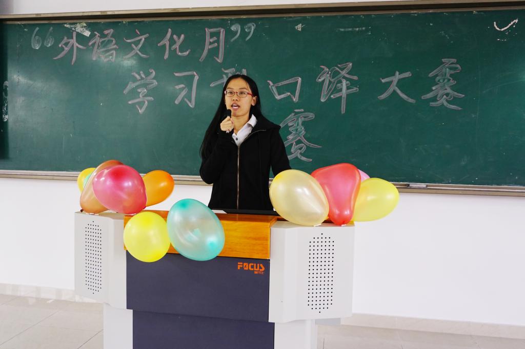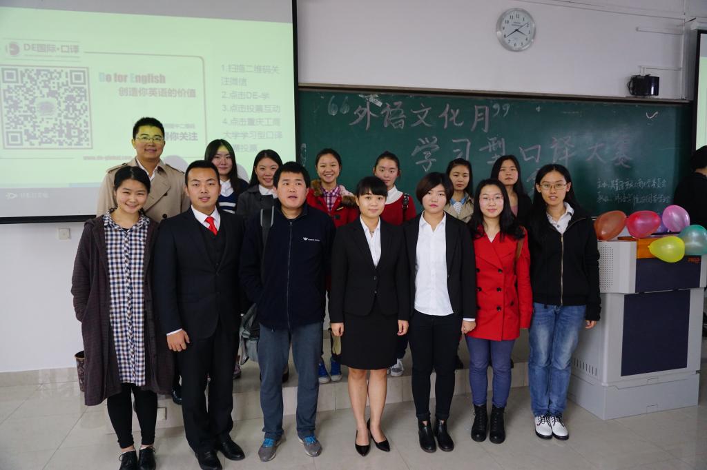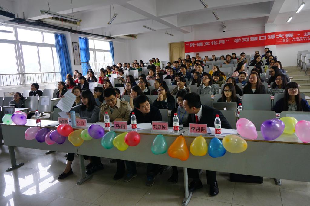 2015年11月20日14:00,作为2015外语文化月的另一项专业赛事---学习型口译大赛在博智楼07421教室成功举办。本次大赛是由共青团388vip太阳集团委员会主办,外语公司分团委员工会及DE国际口译培训中心承办的。外语公司英语系主任刘勇老师,DE国际马丹老师,赵旭东老师,刘亚玲老师及李丹阳老师应邀担任此次大赛评委。
